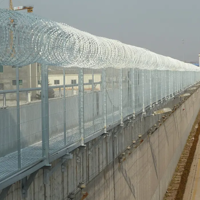 The razor barbed wire is formed by rust protection after the blade-shaped barbed wire rope is manufactured. The sharp knife-shaped thorns are made into an accordion shape by double wires. Because of the special luster of the metal, the product is both beautiful and scary. The product itself is sharp and hard to touch, which can play a certain deterrent effect.