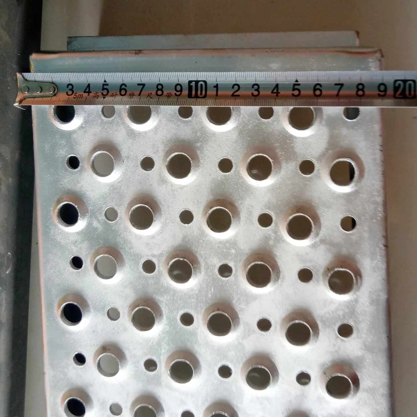 Punching plate materials include aluminum plate, stainless steel plate and galvanized plate. Aluminum punched panels are lightweight and non-slip and are often used as stair treads on the floor.
