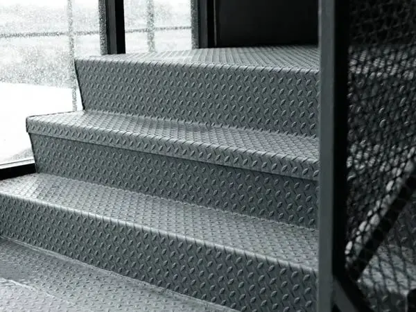 The most common application of diamond-shaped boards is metal stairs. The protrusions on the surface of the diamond-shaped boards will increase the friction between people’s shoes and the board, which can provide greater traction and effectively reduce the chance of people slipping when walking on the stairs.