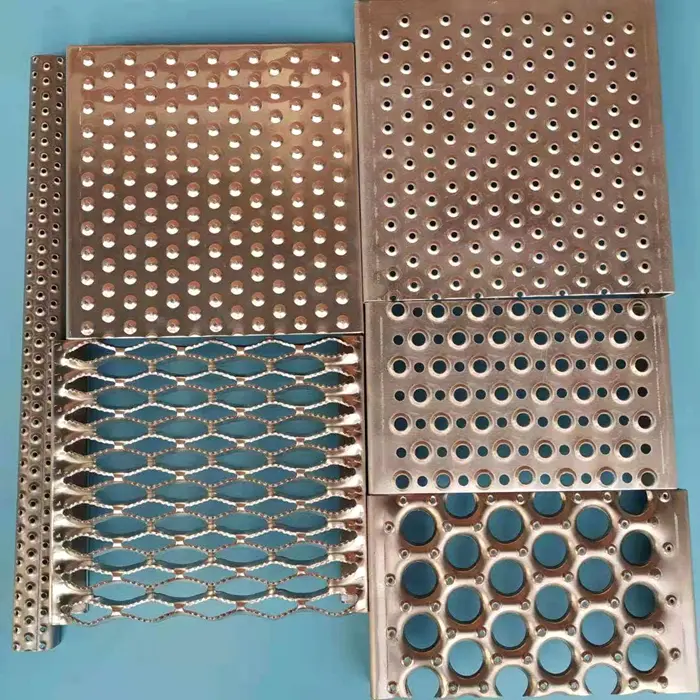 Anti-skid punching plates can be divided into crocodile mouth anti-skid plates, flanged anti-skid plates, and drum-shaped anti-skid plates according to the hole type.