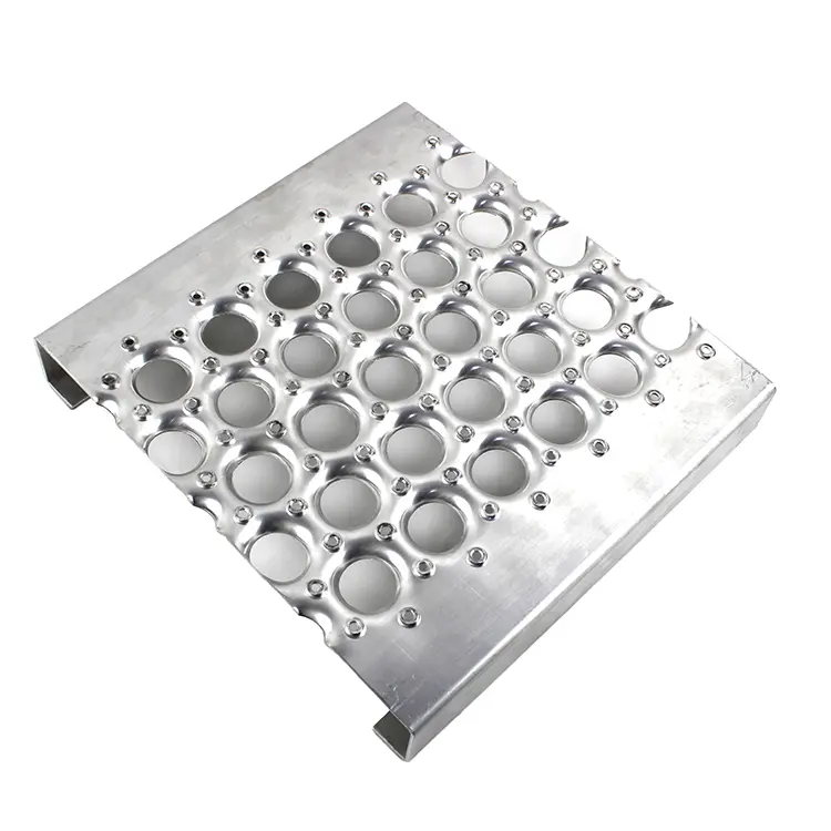 Punching plate materials include aluminum plate, stainless steel plate and galvanized plate. Aluminum punched panels are lightweight and non-slip and are often used as stair treads on the floor.
