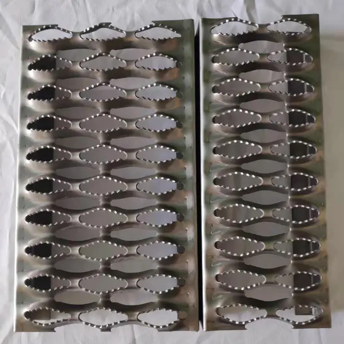 Anti-skid punching plates can be divided into crocodile mouth anti-skid plates, flanged anti-skid plates, and drum-shaped anti-skid plates according to the hole type.