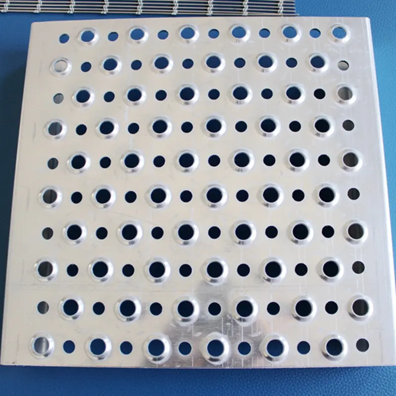 The crocodile mouth anti-skid plate is manufactured by stamping with a CNC punching machine according to a specific mold. First, punch a hole on the metal plate, then replace the mold to drum, and then cut and bend according to the size required by the user. Because the final hole pattern resembles a crocodile's mouth, it is called a crocodile mouth anti-skid plate.