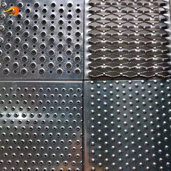 Anti-skid punching plates can be divided into crocodile mouth anti-skid plates, flanged anti-skid plates, and drum-shaped anti-skid plates according to the hole type.